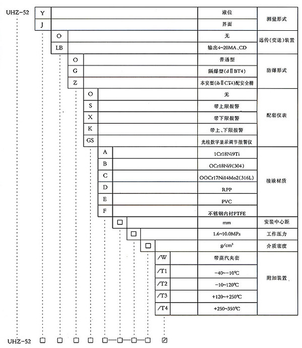 UHZ-52系列磁翻柱浮子液位計,是本廠引進、國內外同類產品,并加以吸收、消化、提高,按原化工部頒布的磁性液位計標準HG/T21584-95研制生產的產品。可用于塔、罐、槽、球形容器和鍋爐等設備的介質液位檢測。該系列磁性液位計可以做到高密封、防泄漏適應于高壓、高溫、腐蝕性介質的液位測量,使用可靠、安全性好,它彌補了玻璃板(管)液位計指示不清晰,易破碎的不足,不受高、低溫度劇變的影響,不需多組液位計的組合。全過程測量無盲區,顯示醒目,讀數直觀,測量范圍大。特別是現場指示部分,由于不與液體介質直接接觸,所以對高溫、高壓、有毒、有害、強腐蝕性介質,更顯其優越性。因此,它比傳統的玻璃板(管)式液位計具有更高的可靠性、安全性、性、實用性。