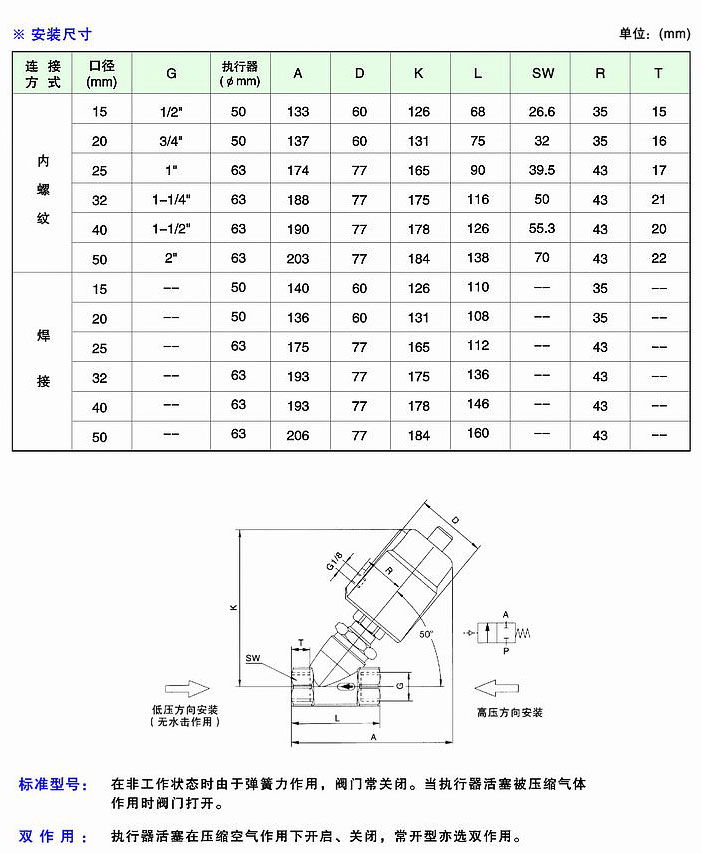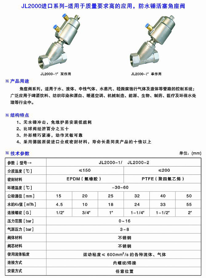JL2000進口系列雙作用角座閥