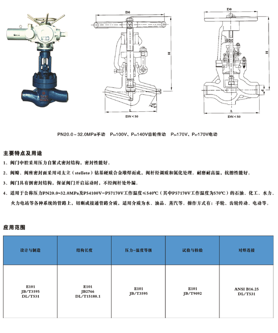 2、閥瓣、閥座的密封面采用司太立鈷基硬質合金堆焊而成,耐磨、耐高溫,抗擦傷性能好、使用壽命長