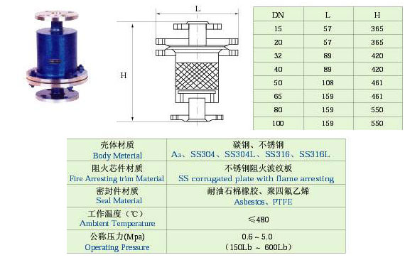 詳細(xì)說(shuō)明: ① 阻火器適用于儲(chǔ)存閃點(diǎn)低于28℃的甲類油品和閃點(diǎn)低于28℃的乙類油品,也適用于儲(chǔ)存物料以氮?dú)夥忭數(shù)墓绊敼奚希[石阻火器與網(wǎng)型阻火器原理同上,用在管道上。 ②與呼吸閥、呼吸人孔配套使用,也可單獨(dú)使用。