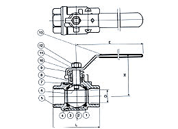 注:二片式球閥連接形式另有對(duì)焊(BW)承插焊(SW),并均可帶國(guó)際標(biāo)準(zhǔn)ISO支架和鎖定裝置